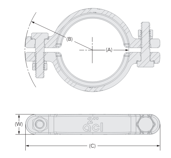 ACL Euro-Pure® clamp, stainless nut, 316L 2 segment bolted assembly. Double bolted clamp with spring washer barrel, polished.