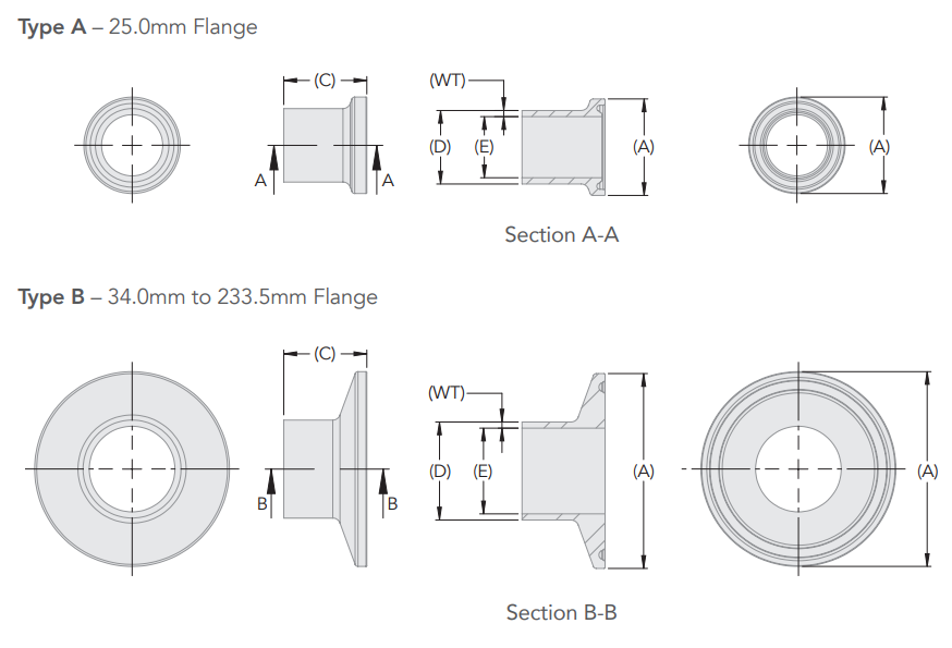 Hygienic Ferrule (DN08) | DIN 32676 Table A (Long) | Length 28,6mm | 316L (0.8 Ra)