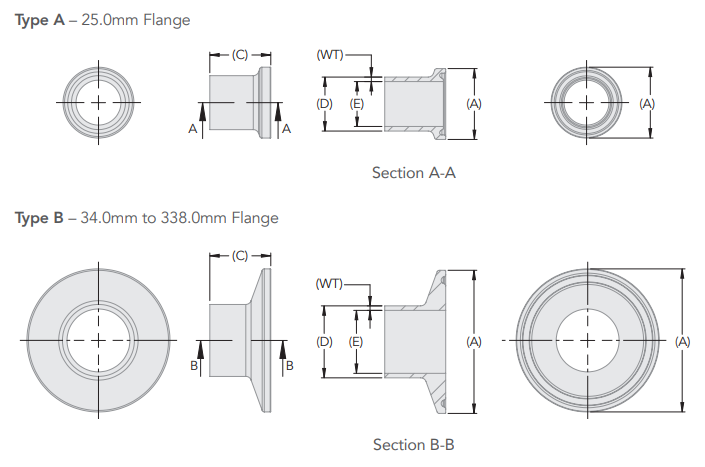 - • Flange (A) mm: 34