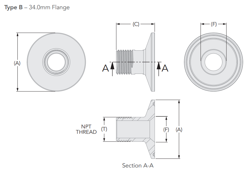 - • Flange (A) mm: 34